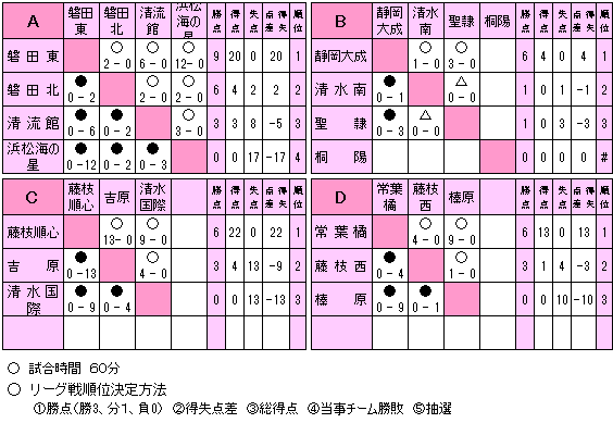 (1)予選リーグ:60分(前後半各30分)