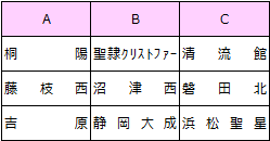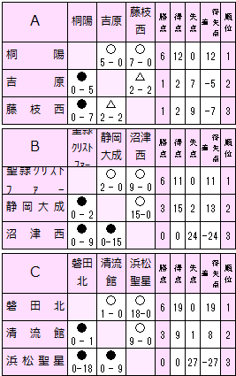 | 清流館、藤枝西、磐田東、磐田北、聖隷クリストファー、浜松聖星 |