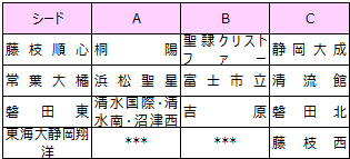 | (2)残り10チームをA・B・Cブロックに分け、1回戦総当たりのリーグ戦を行う。シード順位:令和4年度静岡県高等学校女子サッカー選手権の成績による |