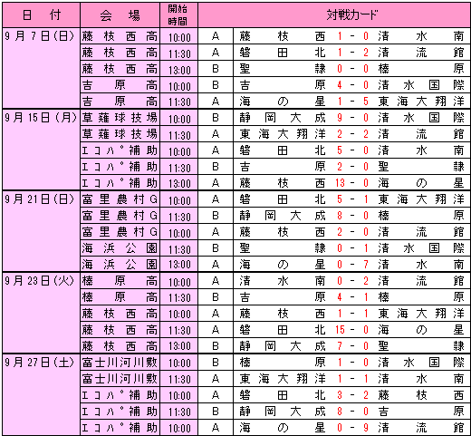 - 磐田北・藤枝西・浜松海の星・東海大翔洋・清水南・清流館