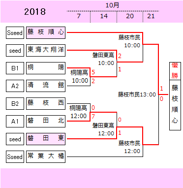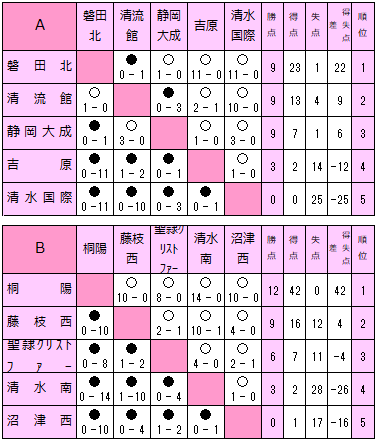 | 第1シード:藤枝順心 第2シード:常葉大橘 第3シード・第4シード(東海大静岡翔洋と磐田東でプレーオフを行い順位を決定する) |