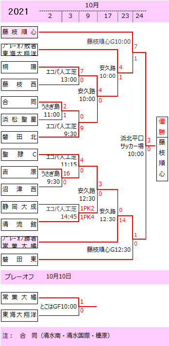 | スーパーシード:第1シード藤枝順心、第2シード磐田東 |