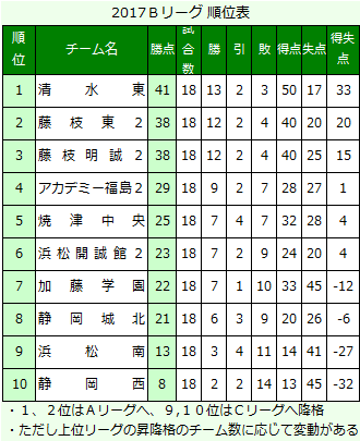 大会名 高円宮杯U-18サッカーリーグ2017静岡・スルガカップ