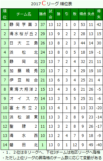 2017 Cリーグ表