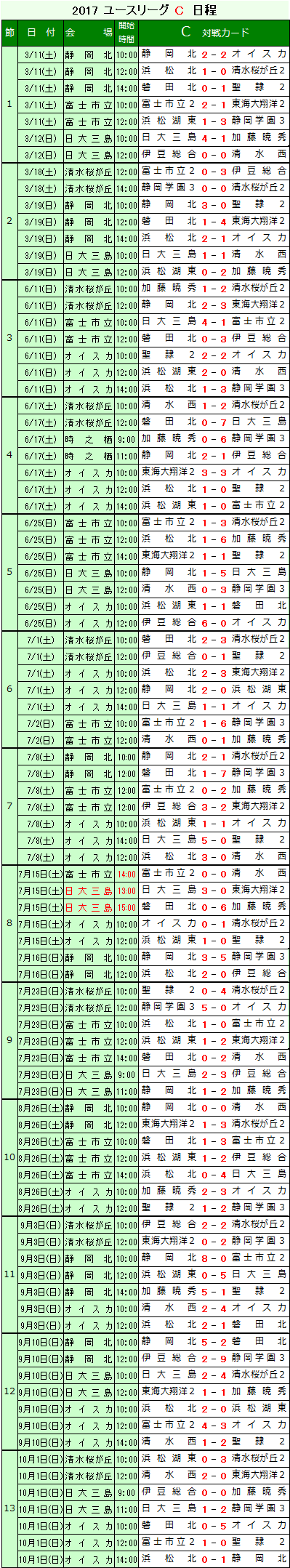 Cリーグ 2017 日程表・試合結果 (会場・時間は変更の場合があります)