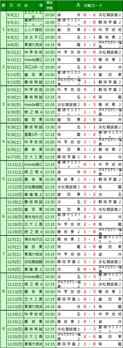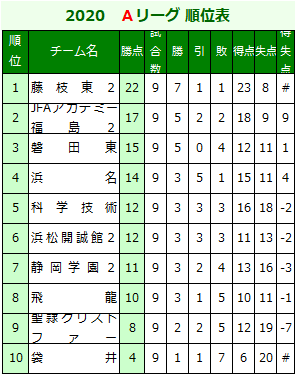 高円宮杯JFA U-18サッカーリーグ2020静岡 スルガカップ大会 |