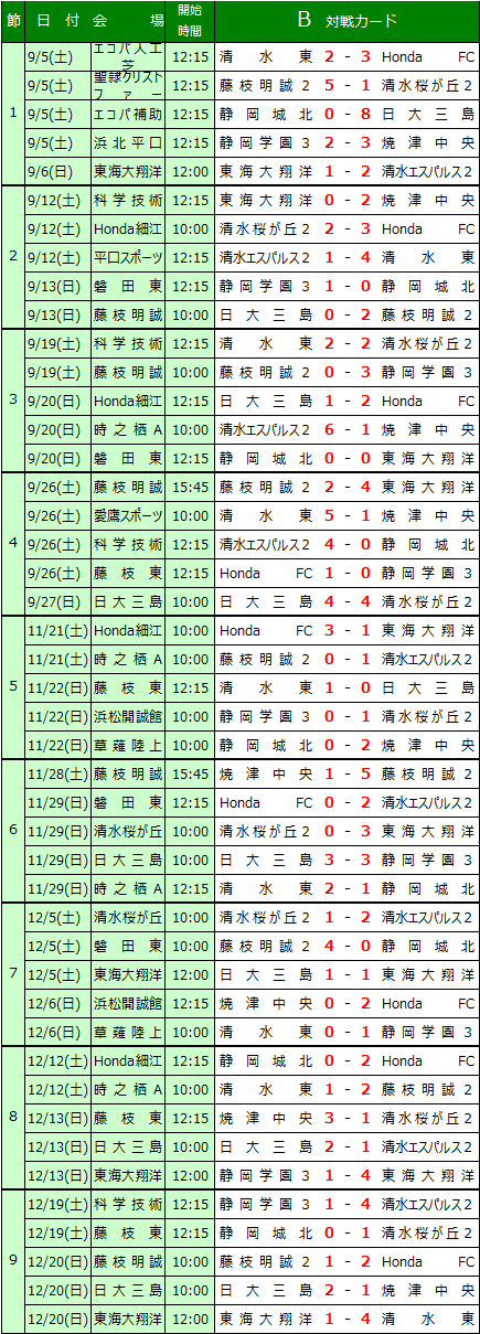 大会名 高円宮杯JFA U-18サッカーリーグ2020静岡 スルガカップ大会