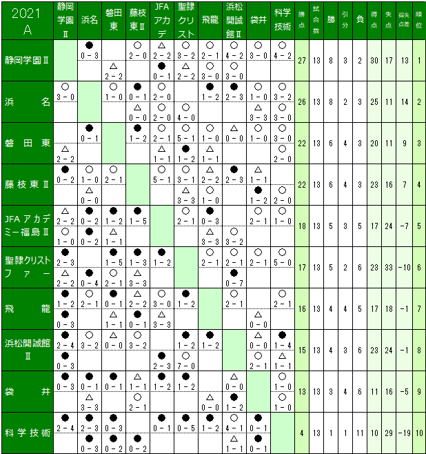 大会名 高円宮杯JFA U-18サッカーリーグ2021静岡 スルガカップ大会