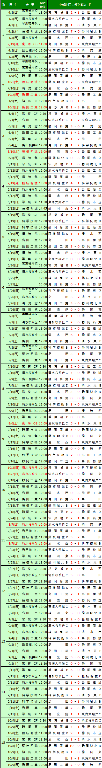 2022 静岡県中部地区サッカーユースリーグ 1部