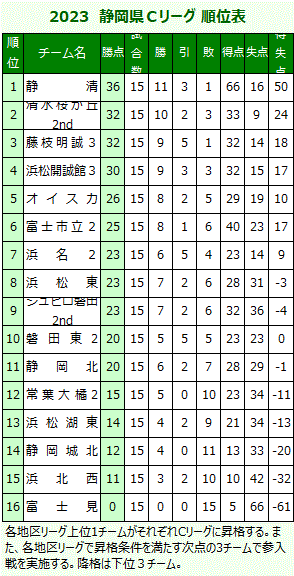 2023Cリーグ表
