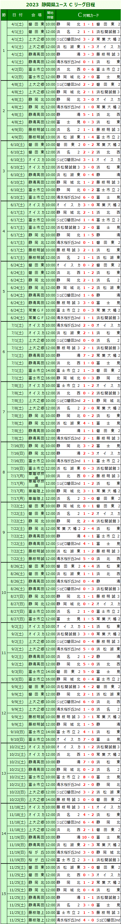 Cリーグ 日程表・試合結果 (会場・時間は変更の場合があります)