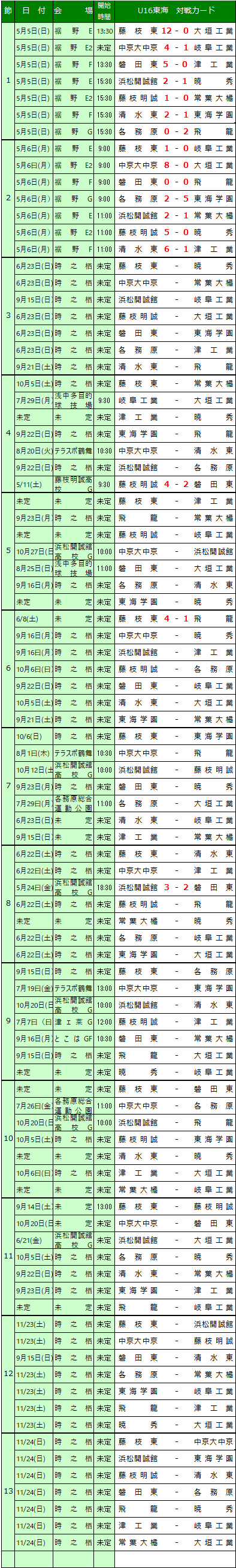 | 本大会は、東海地域のU-16の年代において長期にわたるリーグ戦を通して、選手の育成及び指導者のレベルアップを図り、本大会から日本代表の選手を輩出するとともに、世界トップ10を目指す日本サッカーの形成に資することを目的とする。 |