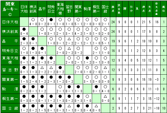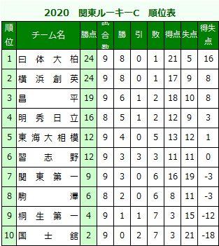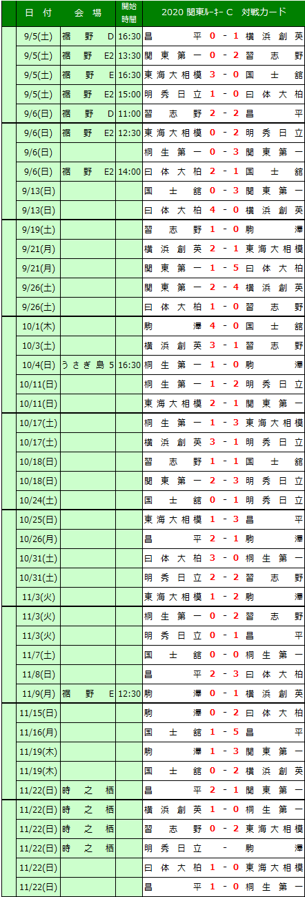 関東ルーキーリーグ C 2020 日程表・試合結果 (最下段より、試合結果情報をお寄せください。リーグ表に反映いたします。)