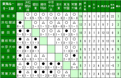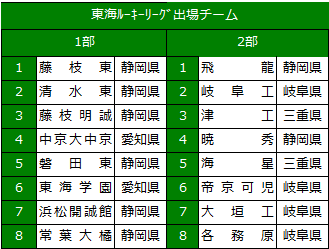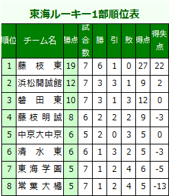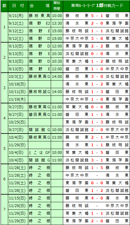 東海ルーキーリーグ 1部 2020 日程表・試合結果