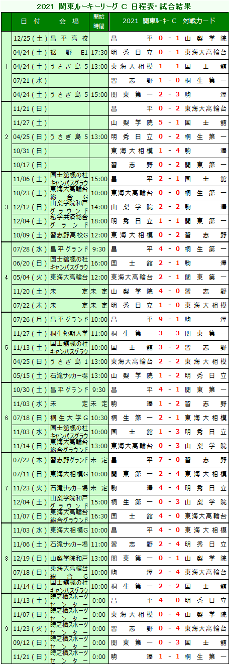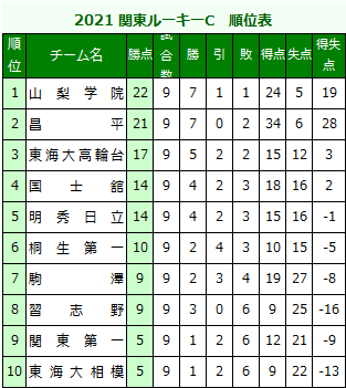 | 1.2021年度の結果Aリーグの1位は、自動的に関東第一代表として出場権を獲得する。 |