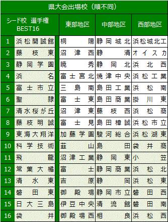 県大会出場チーム数 シード:選手権決勝トーナメント進出校:16 東部:16 中部:16 西部:16 合計:64チーム
