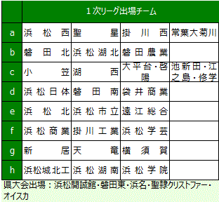 | 6 参 加 校 37校(34チーム) 浜松開誠館、磐田東、浜名、聖隷 C 、袋井は県大会からの出場 |