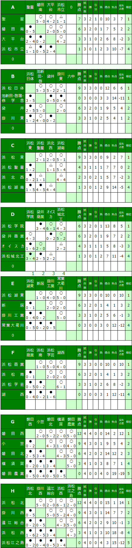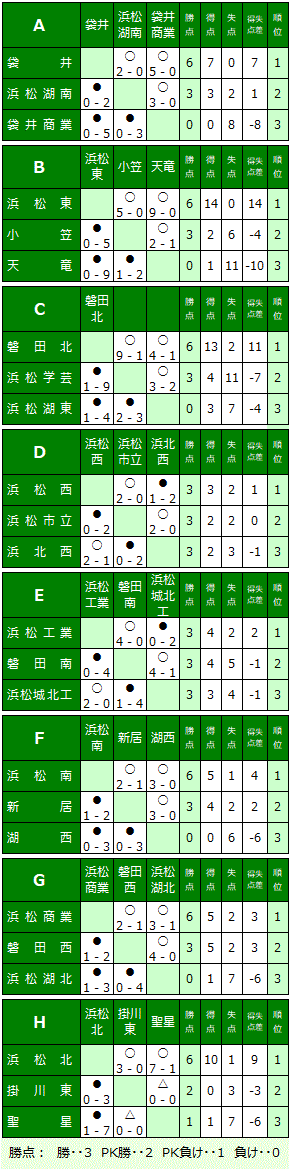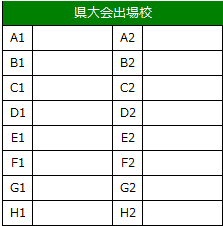 | ③全試合の総得点 ④当該チーム同士の対戦結果 ⑤前記項目が同一の場合は抽選 上位2チームは県大会へ進出する。 |