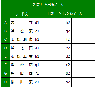 | 各リーグの 1 位は県大会上位ブロック、2位は県大会下位ブロックとなる |