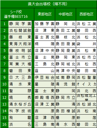 (シード:選手権県大会決勝トーナメント進出校:16 東部:16 中部:16 西部:16 合計:64 チーム)