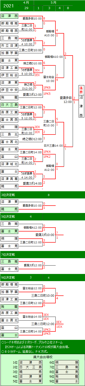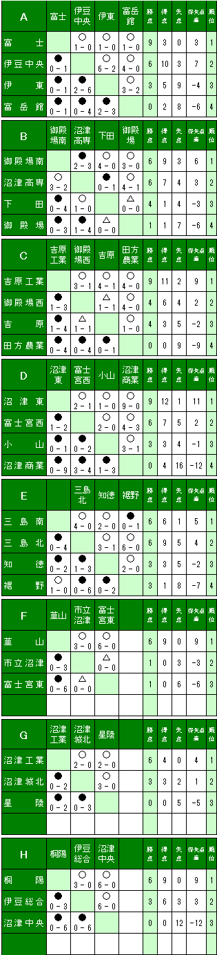 1. 上位10チーム県大会出場 ※富士市立高校は県大会より参加するので10チームには含まない |