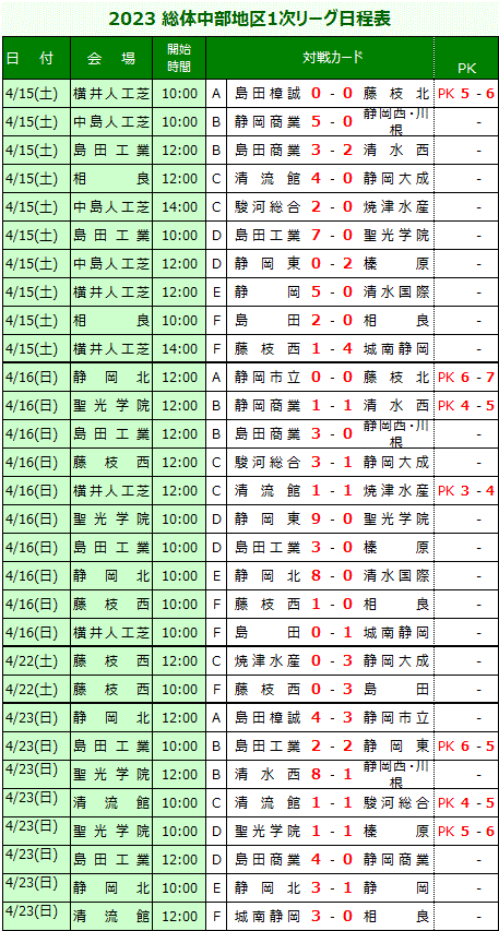 高校総体サッカー中部地区大会 1次リーグ