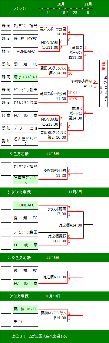 | トーナメント ・・・ 静岡県クラブユースサッカー連盟 U-18 |